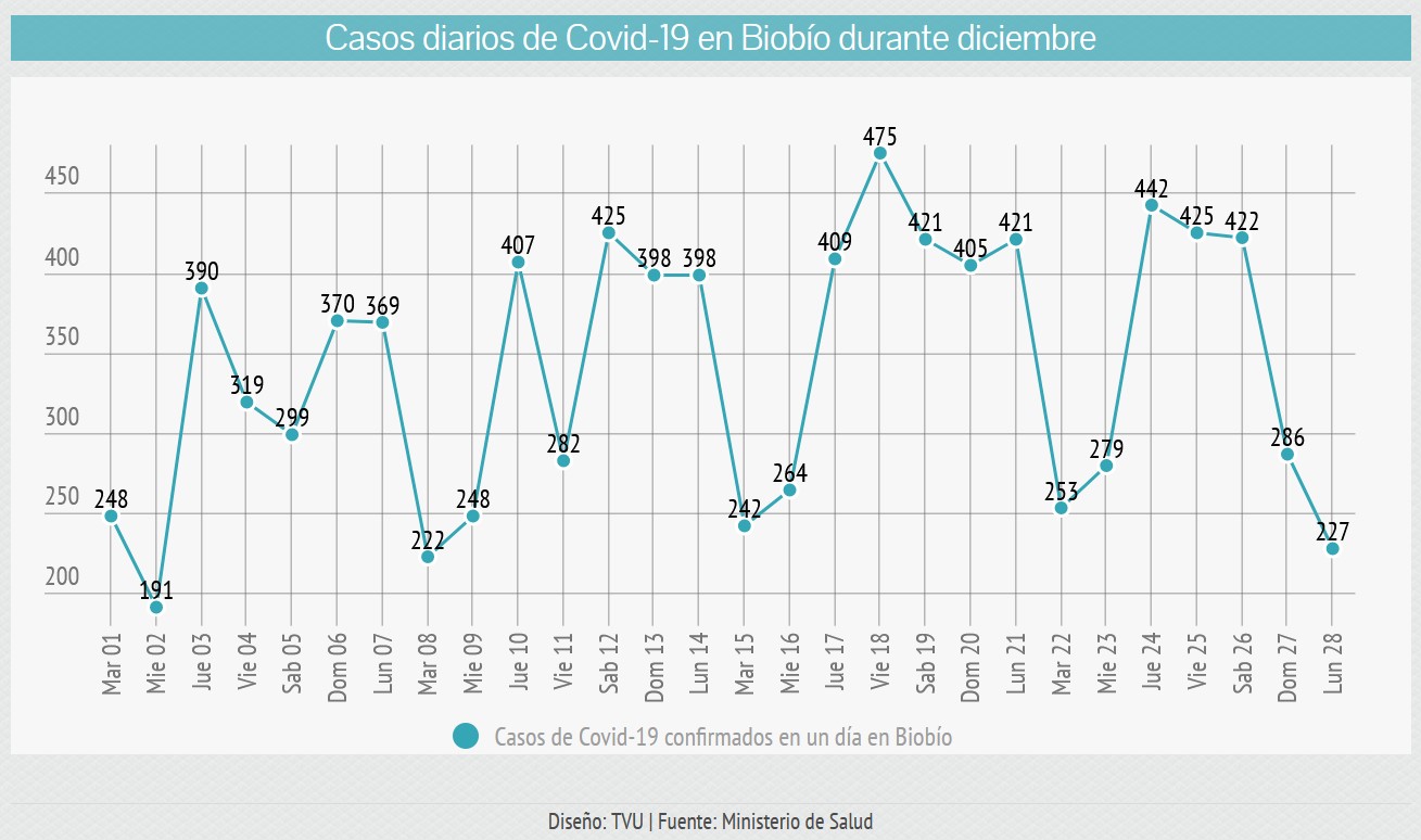 En el reporte oficial de este lunes, la Región del Biobío registró 227 nuevos contagios confirmados de Covid-19, segundo día consecutivo con menos de 300 nuevos casos, lo que responde a una menor cantidad de exámenes PCR durante el fin de semana largo.