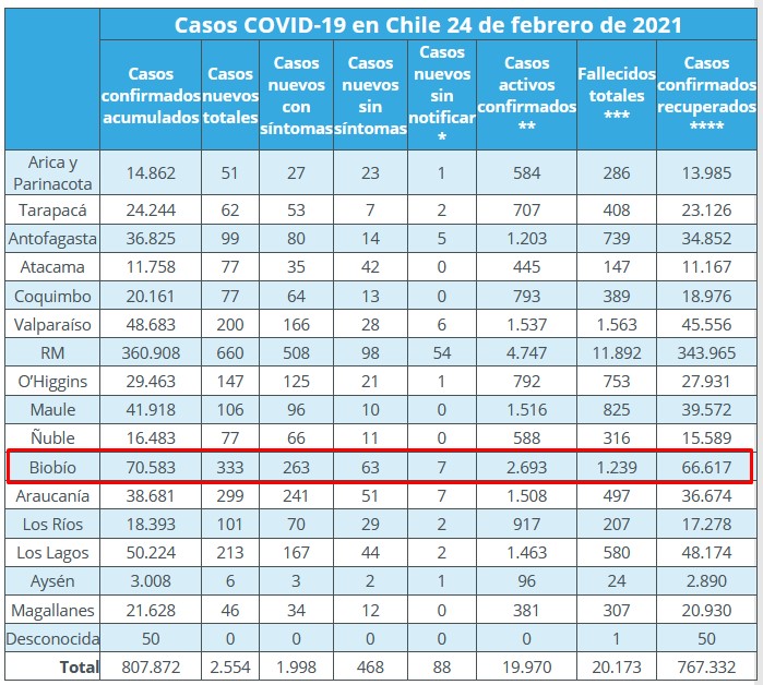 En el reporte oficial de este miércoles, la Región del Biobío registró 333 nuevos contagios confirmados de Covid-19, con lo cual llega a 70.583 casos acumulados desde el inicio de la pandemia.