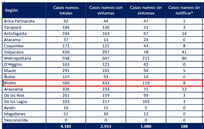 En el reporte oficial de este jueves, la Región del Biobío presentó 560 nuevos contagios confirmados de Covid-19, es la mayor cifra diaria en los últimos 13 días, es decir, desde el viernes 12 de febrero, día que se informó un peak de 618 casos nuevos.