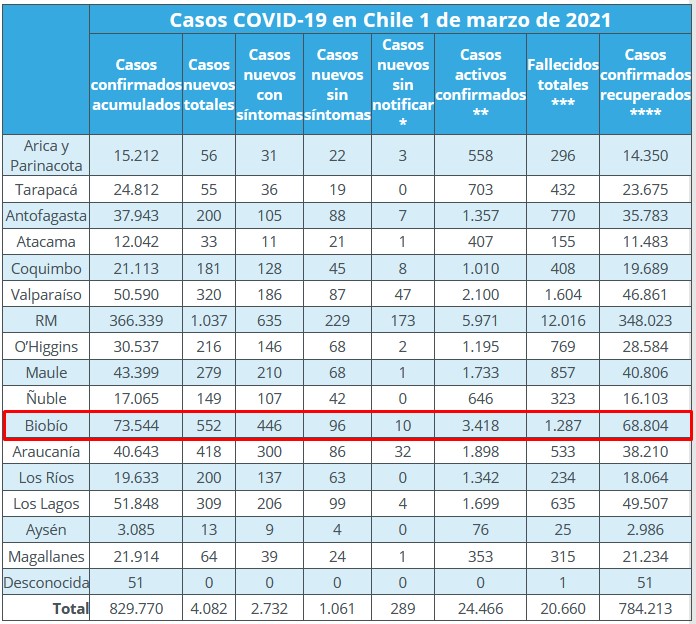 Por segundo día consecutivo la Región del Biobío alcanzó su máximo histórico en la cifra de casos activos de Covid-19: 3.418 infectados contagiantes, según el reporte oficial de este primer lunes de marzo.