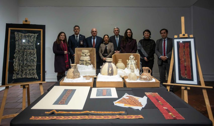 Se trata de 19 piezas arqueológicas de origen peruano, entre cerámicas y textiles de las culturas Chancay, Wari y Pativilca, que datan entre los años 600 y 1476. Estas piezas fueron saqueadas de sitios arqueológicos peruanos y detectadas en colecciones ilícitas en Chile, incluso en plataformas de venta online como eBay e Instagram.