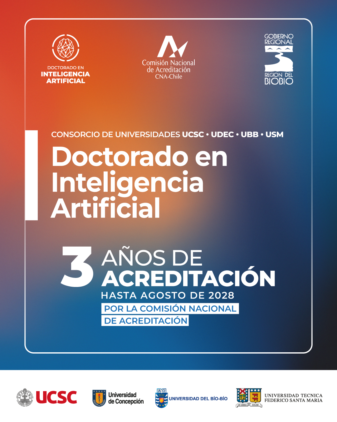 El Doctorado en Inteligencia Artificial del CRUCH Biobío-Ñuble recibió acreditación de la Comisión Nacional de Acreditación (CNA) por un período de tres años, el máximo posible para un programa sin graduados. Este reconocimiento consolida al doctorado como una propuesta de excelencia académica, investigación de frontera y alto impacto nacional.