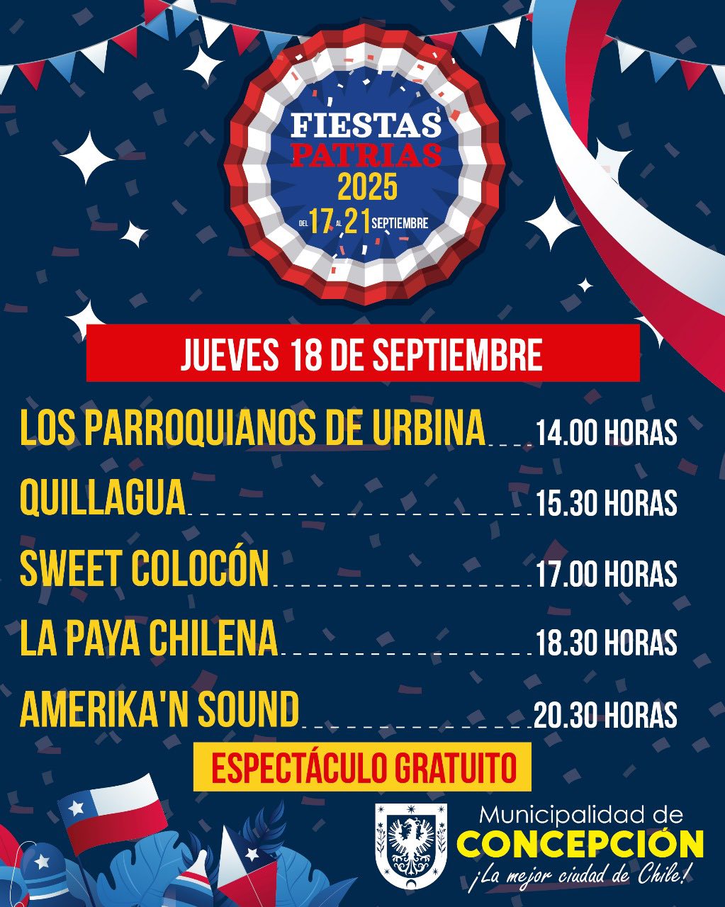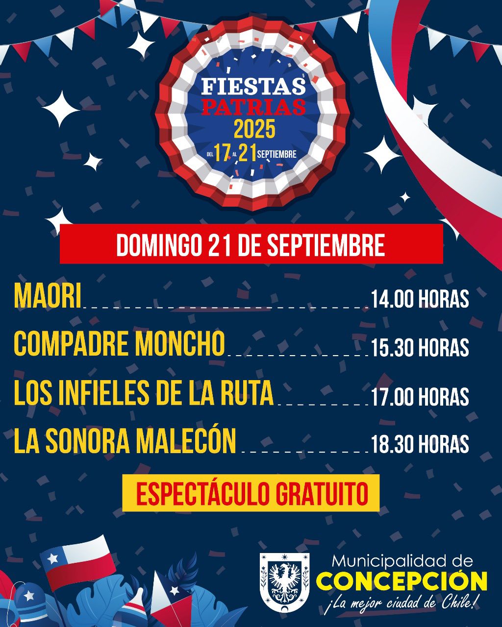 La Municipalidad de Concepción informó de manera oficial la programación de las Fiestas Patrias en la capital regional del Biobío.