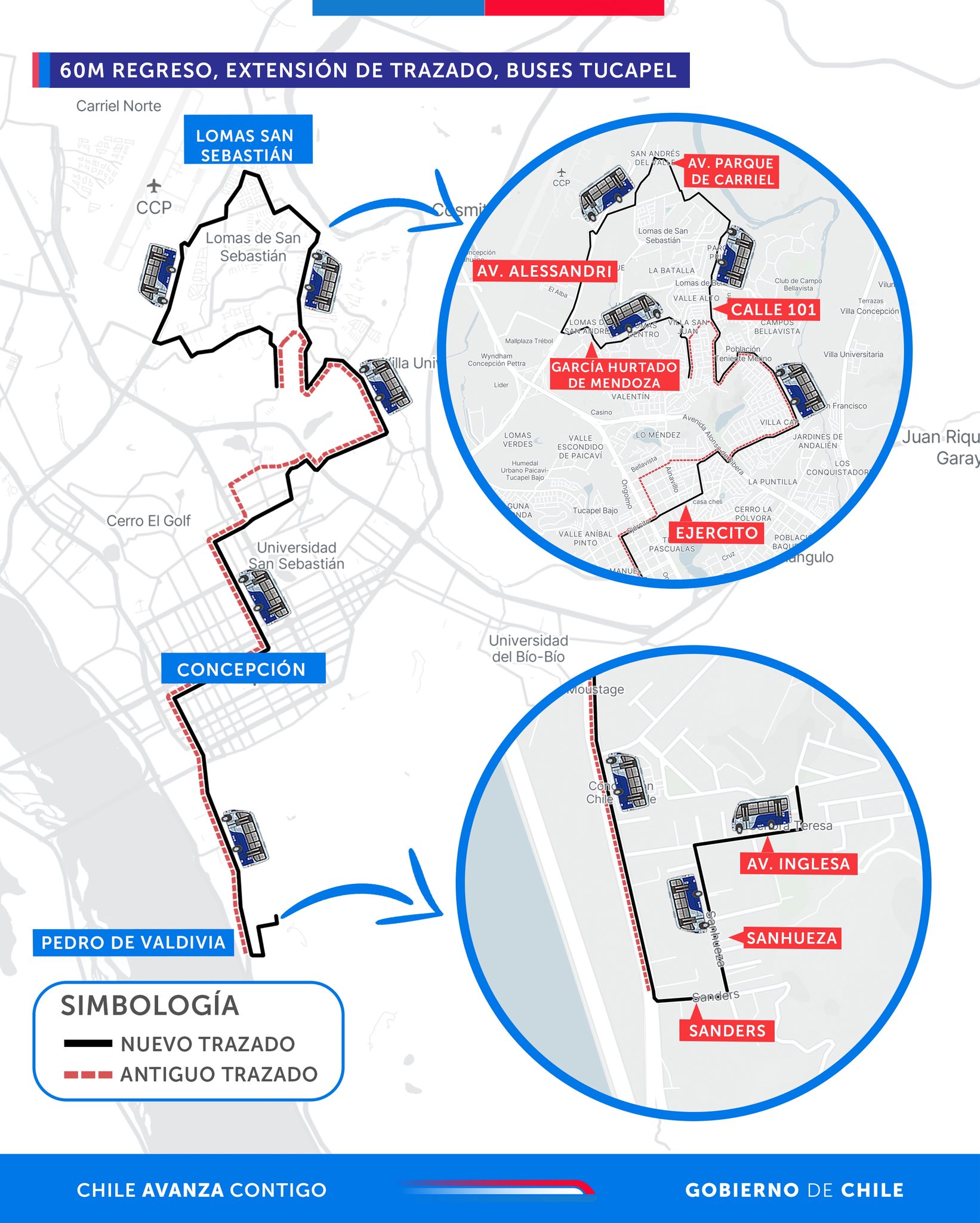 El Ministerio de Transportes, mediante infografías, detalló cómo serán los nuevos trazados que se enmarcan en el ajuste operativo de los servicios del área metropolitana en búsqueda de mejorar la conexión con puntos claves.