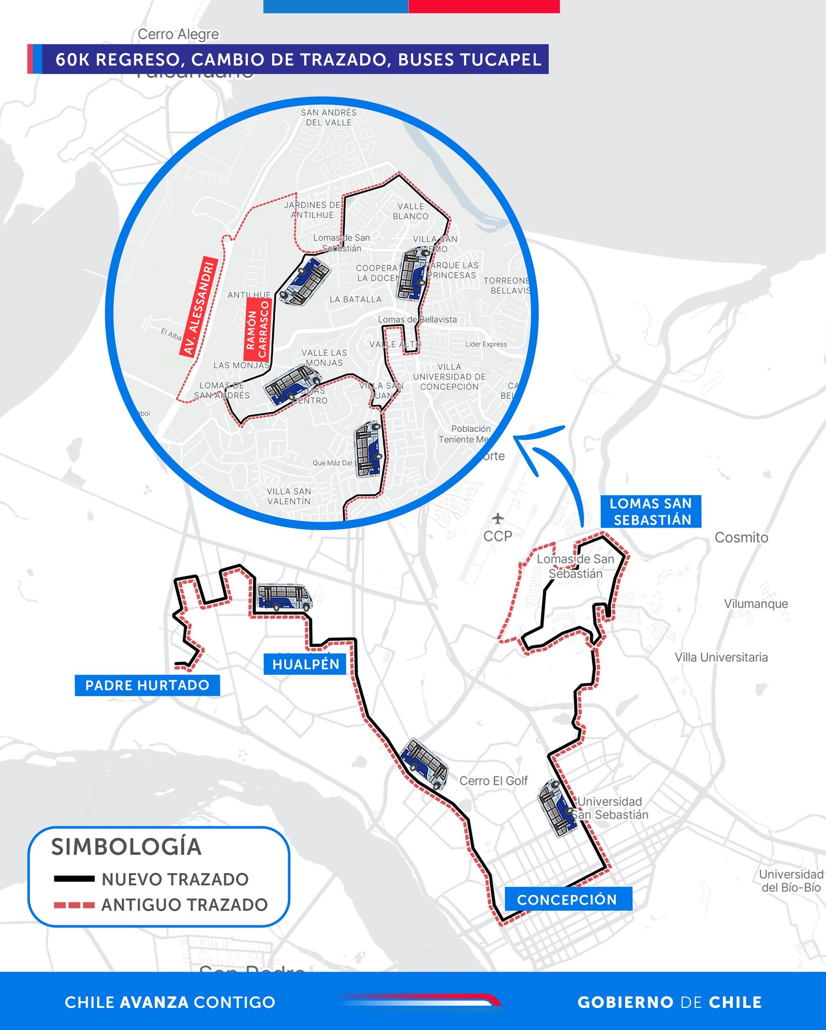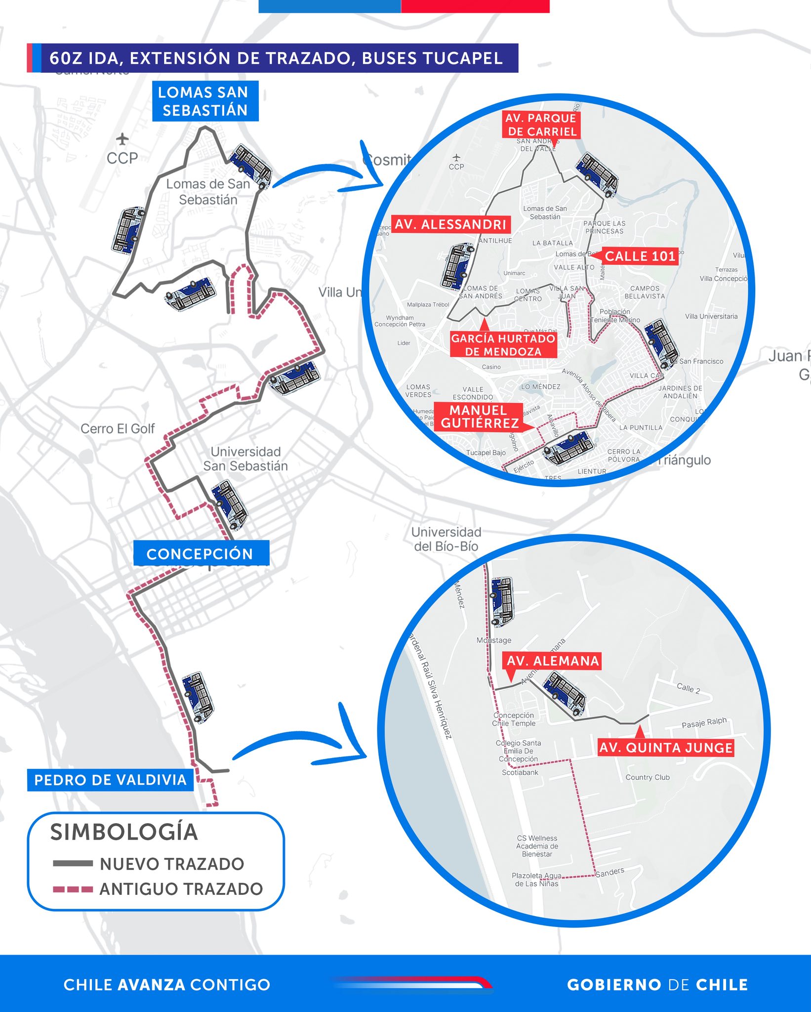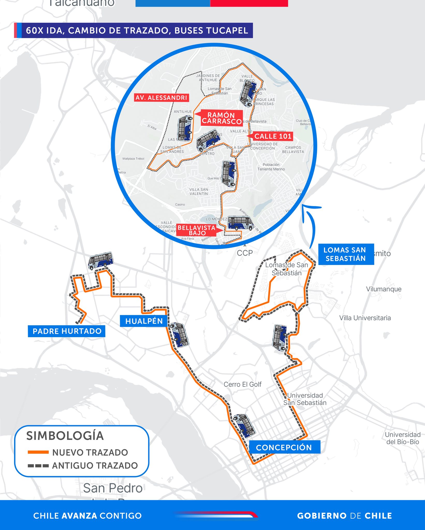 Durante noviembre comenzarán modificaciones en el transporte público del Gran Concepción. En total, son 14 cambios de recorrido en 10 líneas, donde una primera etapa se llevará a cabo este sábado 1.
