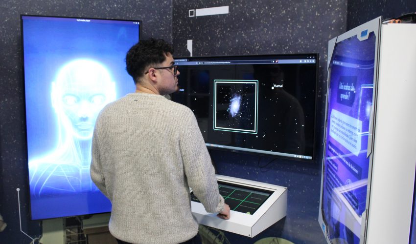 Para una experiencia más concreta, las distintas capacidades de la IA se van entrelazando mediante distintos objetos y experiencias, y cada elemento de las interactividades se relaciona con las ciencias espaciales y astronomía.