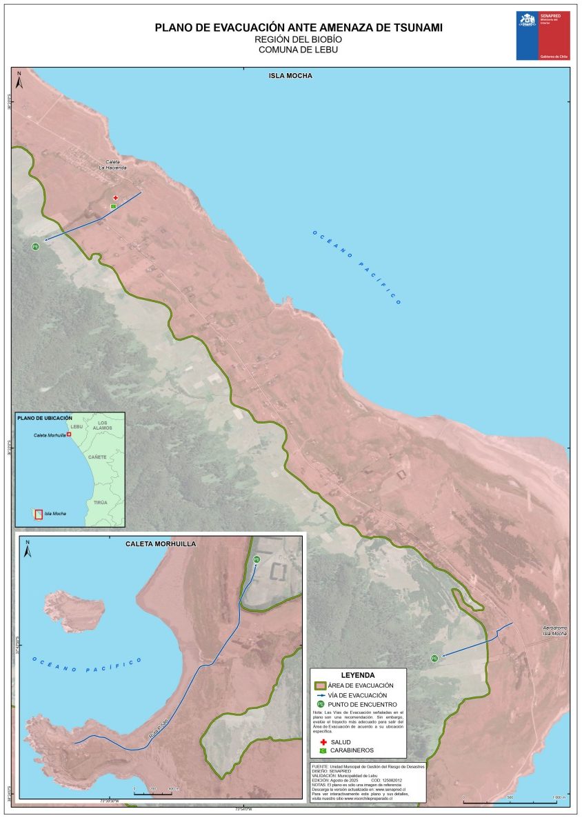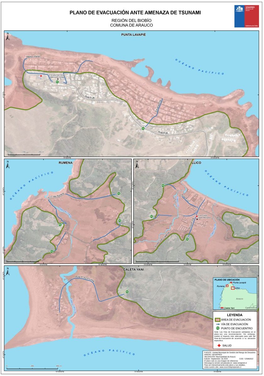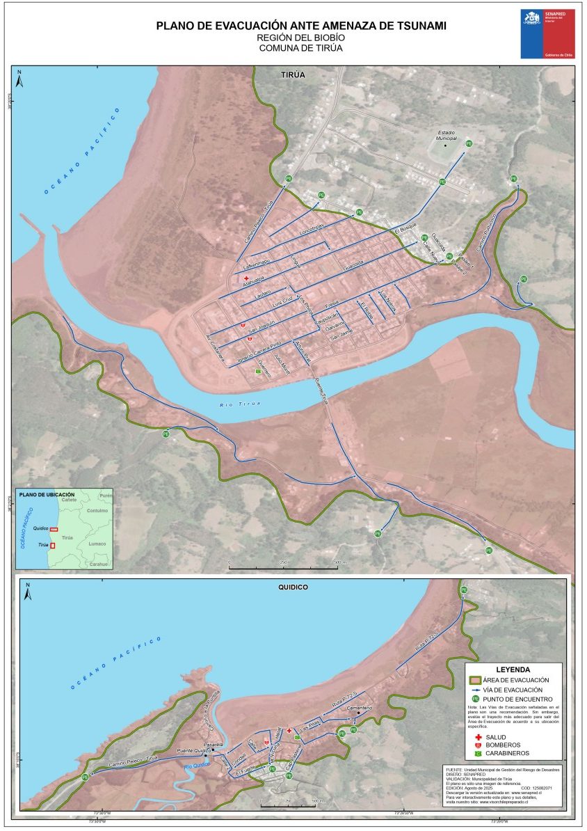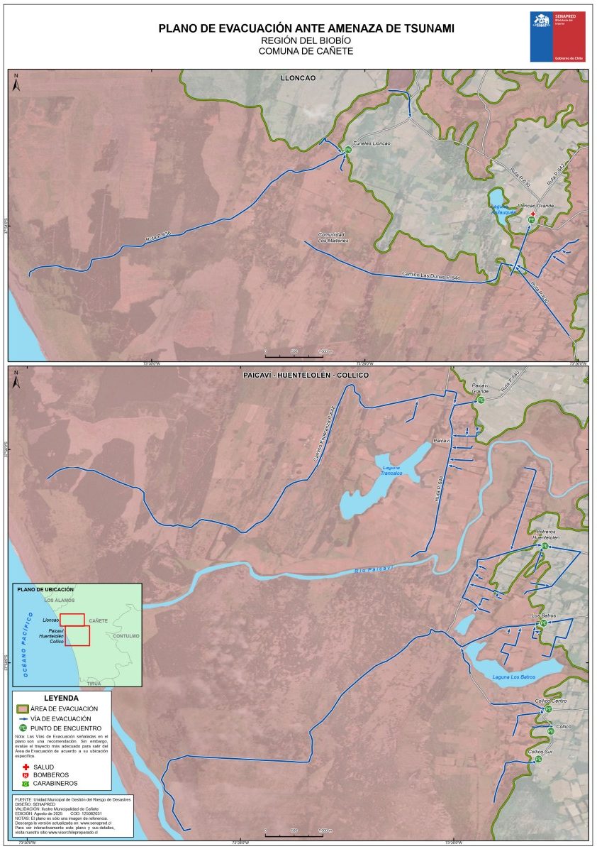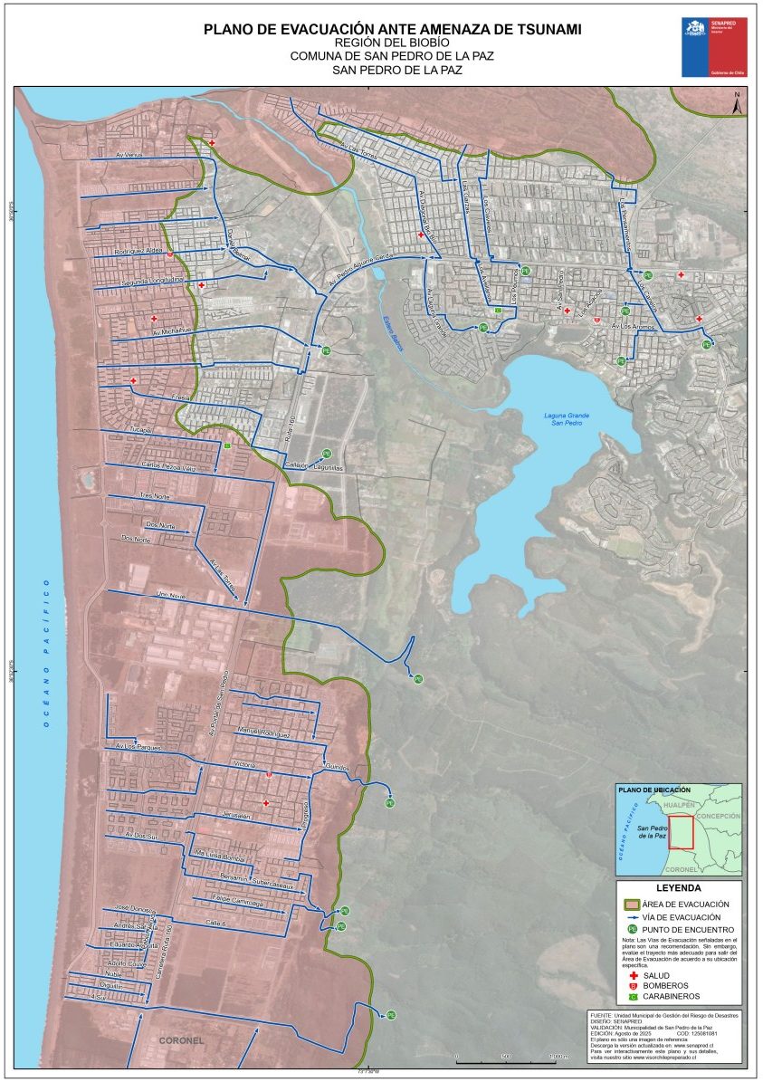 En definitiva, el llamado a evacuar se encuentra dirigido a las zonas de riesgo de las siguientes comunas: Tomé, Penco, Talcahuano, Hualpén, San Pedro de la Paz, Coronel, Lota, Arauco, Lebu, Los Álamos, Cañete, Tirúa e Isla Santa María.