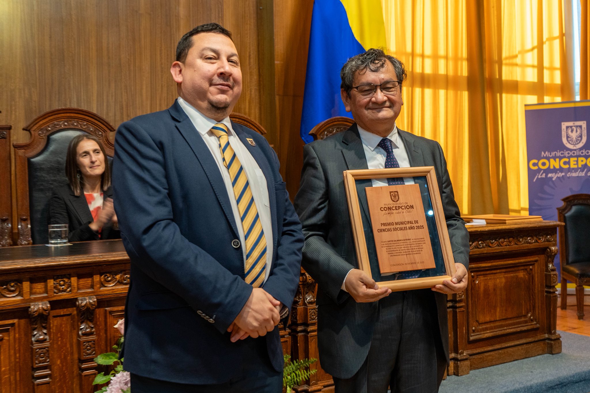 Los académicos de la Facultad de Humanidades y Arte de la Universidad de Concepción, Francisco Huichaqueo Pérez y Dr. Gastón Salamanca Gutiérrez, fueron reconocidos en los Premios Municipales 2025 en las categorías de Arte y Ciencias Sociales, respectivamente.