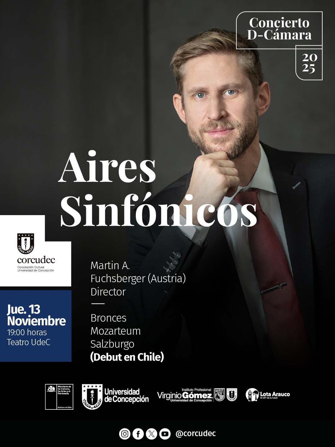 Los bronces y maderas de la Orquesta Sinfónica Universidad de Concepción serán los protagonistas del último concierto del ciclo D-Cámara, junto a Martín Fuchsberger (Austria), en su debut en nuestro país.
