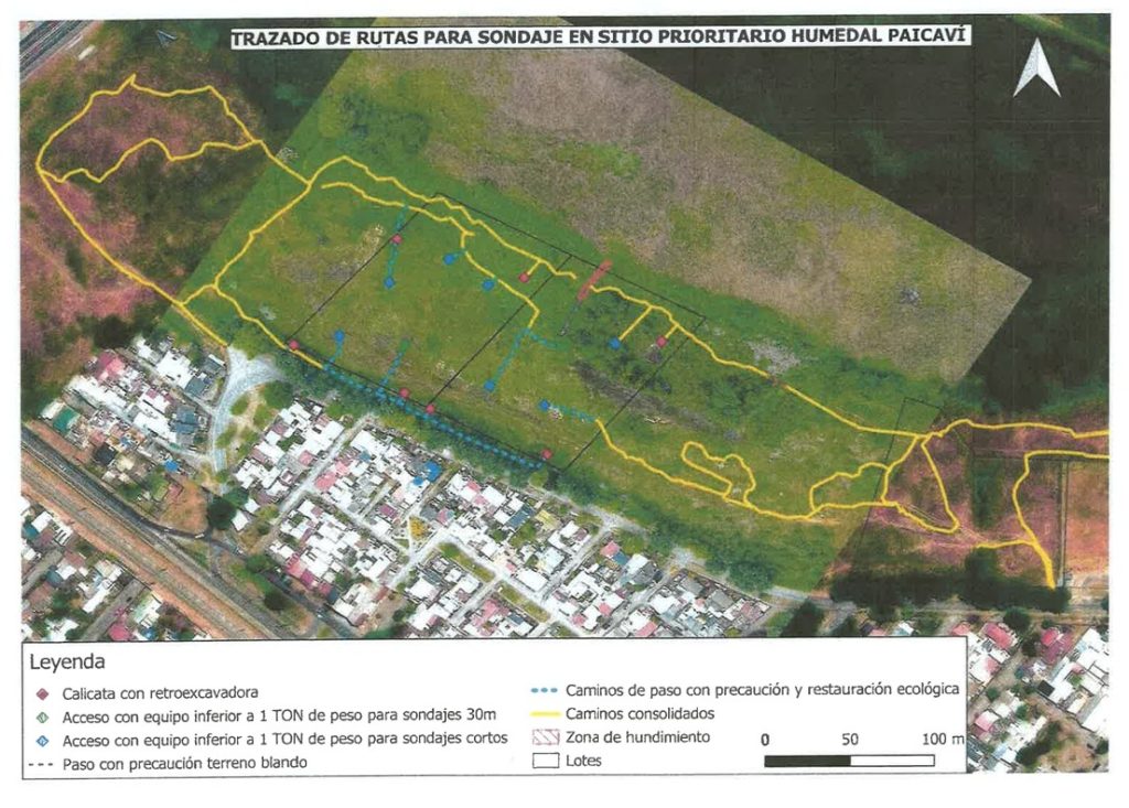 Desde el Comité de Defensa del Humedal Paicaví, Camilo Lorenzetti explicó que, según el mapa de rutas definido para el ingreso, “por los bordes de la humedad, en las zonas que ya están más firmes, asentadas, y tocar sólo de forma eventual y puntual, para acercarse a los puntos de inspección, con la maquinaria pesada. Y de dañar algunos sectores del humedal, están obligados a hacer restauración”.