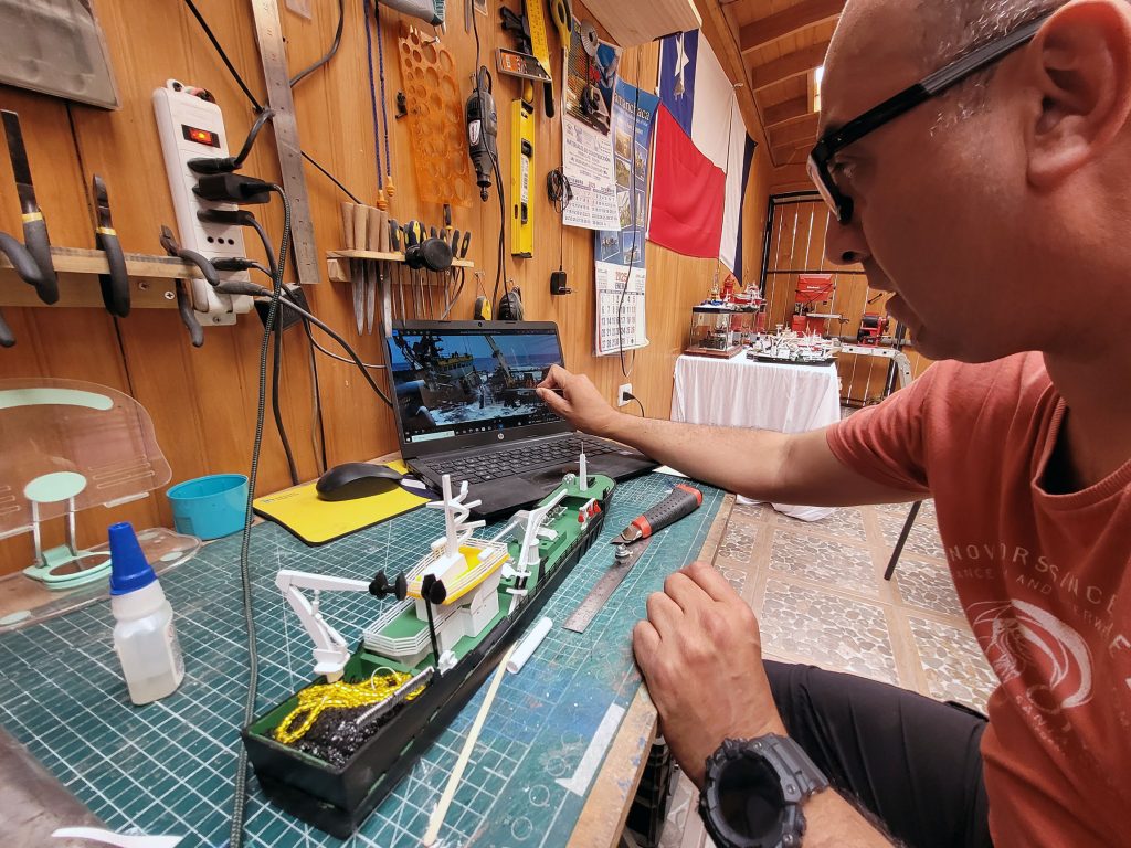 Tras su ingreso a la institución en 1996, no fue hasta 2015, en medio de una comisión a Cabo de Hornos que este buzo de salvataje construyó su primer barco a escala. Lo hizo para tener un espacio de entretención en las horas libres que habían en la misión de poco menos de un mes.