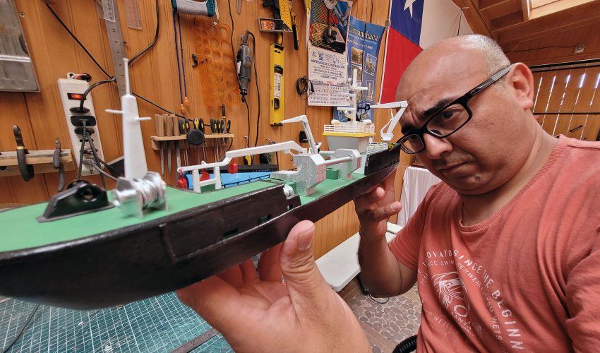 Lo que comenzó como una factura con fines personales- un remolcador-, abrió paso a que un tercero le encargara una maqueta. La realizó y la vendió, siendo la primera de 68 que ha construido en una década (58 entregadas y 14 en proceso).