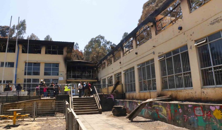 En visita a las instalaciones del Liceo Ríos de Chile de Lirquén que resultó con serios daños en su infraestructura producto de los incendios, dónde a simple vista pareciera haberse conservado la construcción de obra gruesa, el ministro de Educación, Nicolás Cataldo, señaló que “estamos precisamente en el marco de esta etapa de planificar la reconstrucción de este espacio, es momento de salir adelante de avanzar con soluciones concretas”.