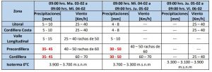 Según el último análisis de riesgos de Senapred, emitido a las 08:35 horas del martes 3 de febrero, se prevé una condición sinóptica de sistema frontal, con precipitaciones normales a moderadas en el sector de precordillera y cordillera en la región del Biobío.