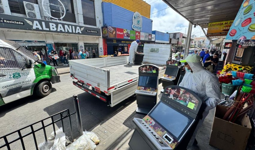 El procedimiento se registró este viernes 20 de febrero en calle Maipú, entre Caupolicán y Aníbal Pinto, donde fueron retiradas 62 máquinas de juegos y fue clausurado el lugar.