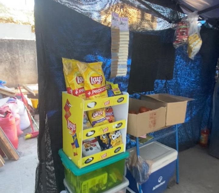 “Por ahora no hemos podido seguir con las confecciones por tema de espacio, ya que nuestro emprendimiento fue pérdida total, con las maquinarias, el espacio donde yo tenía el taller que estaba afuera de mi casa y no hemos podido empezar con las costuras”, relató. Sin embargo, logró retomar parcialmente la venta de abarrotes instalando un toldo donado, bajo el cual ofrece productos básicos para comenzar a reconstruir su negocio.
