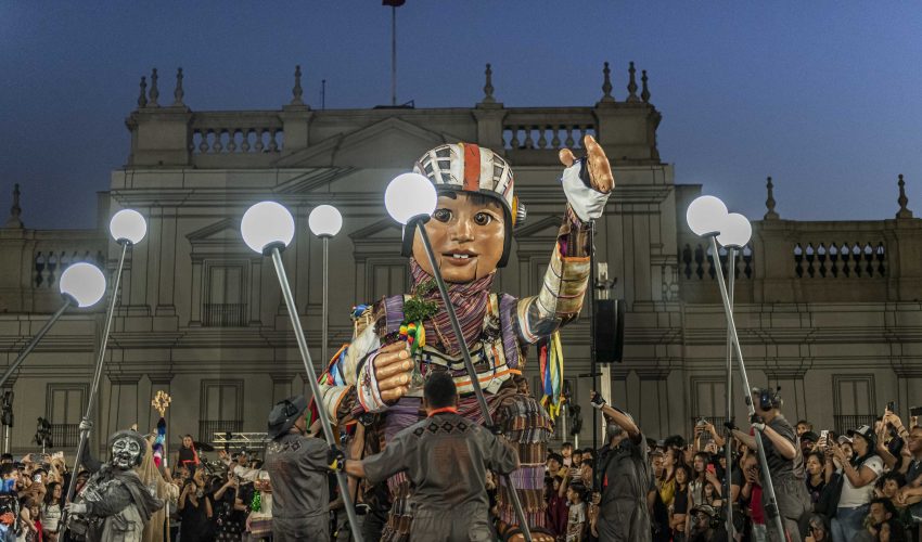 Martín Erazo, director de La Patogallina -compañía que este año cumple 25 años de trayectoria-, explicó el proceso de creación del pasacalle: “Venimos trabajando hace mucho tiempo este espectáculo que hemos hecho con mucho cariño. Hemos podido investigar y acercarnos de nuevo a un elemento tan importante de la identidad nacional que es el Gigante de Tarapacá, un geoglifo de hace muchos siglos, parte del patrimonio de esa región. Siempre tratamos de trabajar con nuestra identidad y que la obra invite a conocer y estudiar”, señaló.