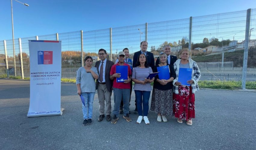 En la multicancha del sector El Pino de Concepción se llevó a cabo la entrega de copias de escrituras de dominio a 10 familias del sector El Pino, en la comuna de Concepción. El hito contó con la participación del Ministro de Vivienda y Urbanismo, Iván Poduje, el Delegado Presidencial Regional, Julio Anativia Zamora; el Director General de la CAJ Biobío, Mauricio Decap Fernández, el alcalde de Concepción Héctor Muñoz y representantes del Gobierno Regional, quienes acompañaron a los vecinos en este paso hacia la normalización de sus vidas.