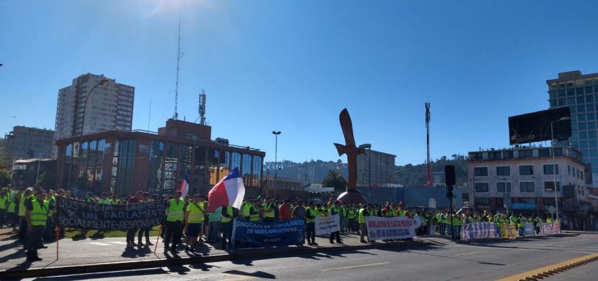Desde temprano durante esta jornada cerca de 400 trabajadores industriales se instalaron en la Plaza España de Concepción, frente a la Intendencia de la Región del Biobío, para protestar por el veto presidencial del Gobierno hacia la captura de la jibia.