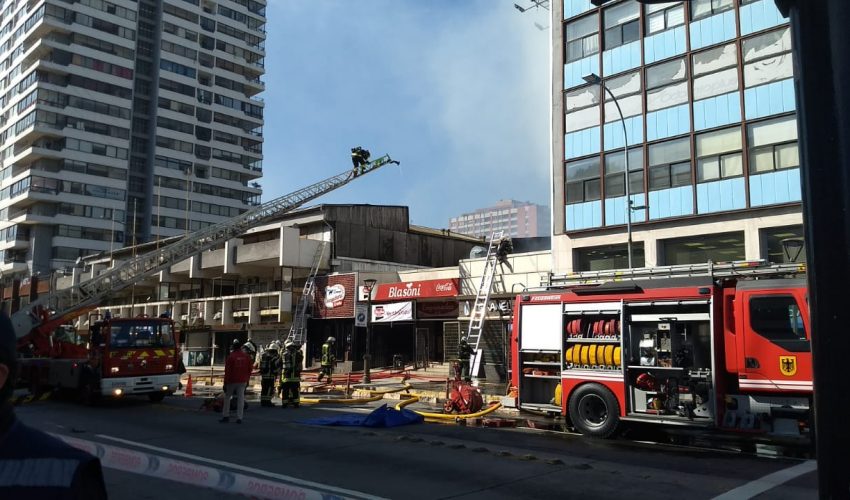 Los locales Blasoni, Fina Estampa y Granel resultaron con serios daños producto del incendio registrado cerca del mediodía de ayer martes en avenida O’Higgins de Concepción, a metros de la Plaza Independencia. La emergencia también obligó a evacuar el gimnasio Fernández Vial, habilitado como centro de vacunación.