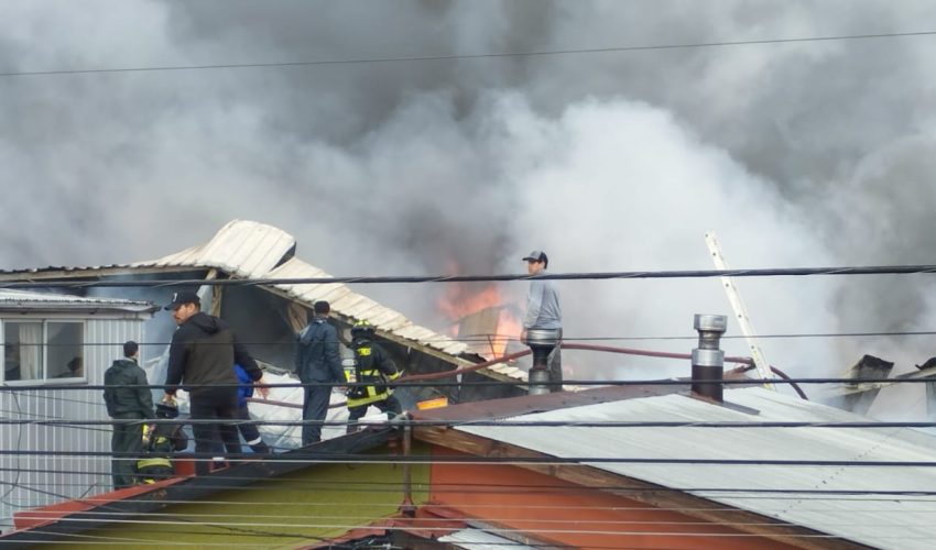 Este jueves se desató un gran incendio en una bodega y fábrica de ropa usada en las esquinas de Camilo Henríquez y Santa Sofía, en Chillancito, Concepción. Más de 10 viviendas resultaron afectadas por las llamas, mientras que más de una decena de unidades de bomberos debieron trabajar en el lugar.