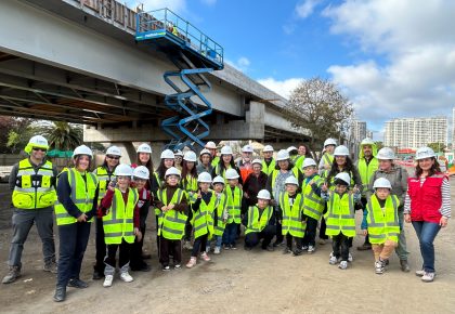 Revisa las fotografías: niños de Aurora de Chile visitan obras del Puente Chacabuco