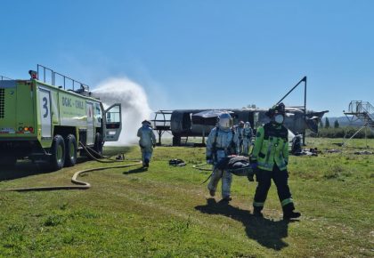Ejercicio de simulacro de accidente aéreo movilizó a equipos en el Aeródromo Carriel Sur